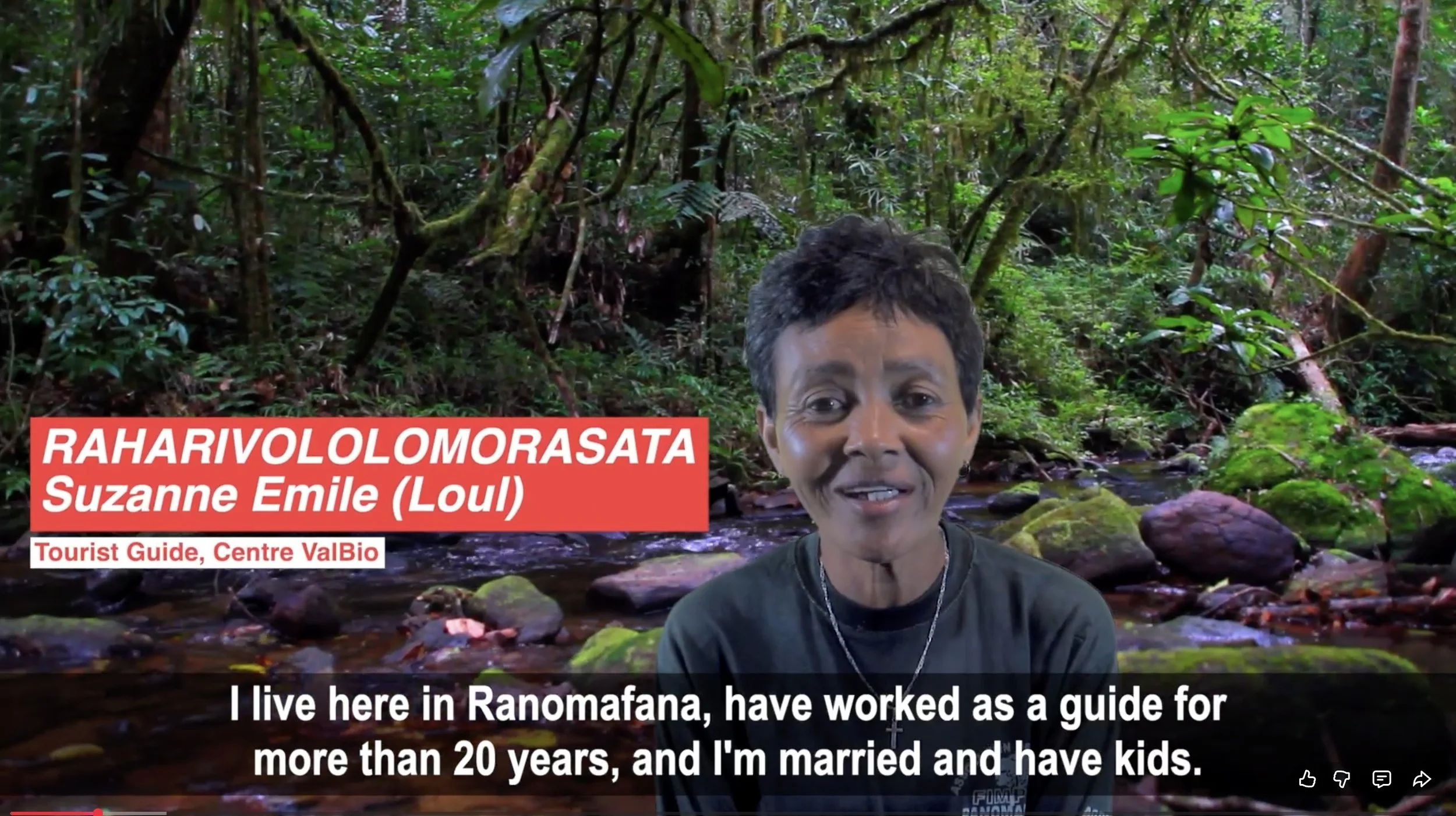 Voahirana Ravonimboahirantsoa has worked as a guide in Ranomafana since 1998, transitioning from informal work into guiding through her strong interest in nature. She learned from experienced guides and received training in first aid and rescue, emphasizing the importance of visitor safety in the forest. Voahirana discusses how different visitors—by age and country—bring different interests and expectations, requiring guides to adapt their interpretation. She highlights the important role women play in conservation, noting that women are often listened to because of their perceived maturity and responsibility. Voahirana also speaks about medicinal plants, including species that have been scientifically tested and others known through long-standing community use. She expresses concern about species at risk of extinction, particularly the greater bamboo lemur, and emphasizes the shared responsibility of protecting the forest for future generations.
